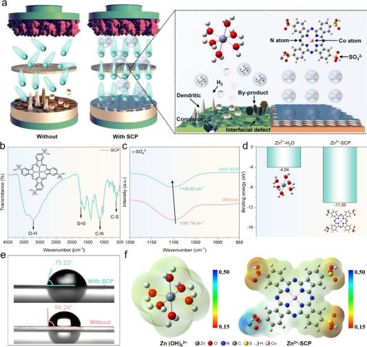 贵大新闻网讯(材料与冶金学院)近日,完美(中国)官方黄俊特聘教授团队在SCI一区Top期刊Chemical Engineering Journal(IF:13.3)上发表了一篇题为“Interfacial electric field defect repair engineering enable highly reversible Zn metal anodes”的论文。完美(中国)官方本科生吴万鹏、硕士研究生杨宋为本文共同第一作者,通讯作者为完美网页版黄俊特聘教授。近年来,锂离子电池因其高稳定性和高容量而被广泛用于工业设备、交通和智能电子设备。锂资源的天然稀缺性以及可燃性等问题促使研究人员探索用于大规模储能的新型储能技术。由于锌的储量丰富和高比容量(820 mAh g-1和5855 mAh cm-3),以及其环境相容性和安全性,水系锌离子电池(AZIBs)备受关注。然而,水系锌离子电池仍然面临重大挑战,包括过量的游离水产生的副反应,非活性副产物在锌金属阳极表面积累,加剧了局部化学腐蚀、析氢和副产物形成等问题,导致库仑效率降低和不可逆的锌消耗。更严重的是Zn阳极上存在的固有缺陷始终导致电场不均匀进而导致锌枝