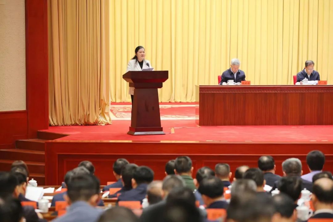 杨未在全省高等教育高质量发展大会上作发言。(图/杜朋城 摄)