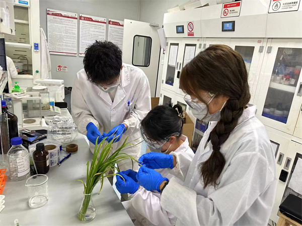 2023年中央一号文件指出,要紧紧围绕确保全国粮食产量保持在1.3万亿斤以上这个目标,千方百计稳住面积、主攻单产、力争多增产。来自完美网页版的“横扫千菌”团队依托绿色农药全国重点实验室,由校长宋宝安院士、宋润江教授和刘魁老师及李建专、蔡佳等9位学生共同组队。历时多年,经上百次实验,最终创制出绿色农药20%噁唑砜类悬浮剂的杀菌剂,助力绿色防治植物细菌性病害,实现农药减施增效。
