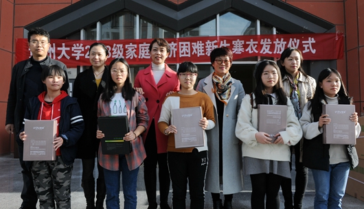 The program of distributing winter clothes has long been undertaken by GZU, for which the funding has been growing year by year. This year, GZU spent nearly 200,000 yuan in the purchase of over 2000 winter clothes for more than 1000 students from poor families. The university administration has promised to increase the funding and provide care to more students.