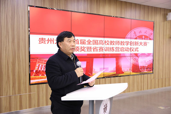 On March 10, 2021, GZU held an award ceremony for the winners of the First GZU National Teaching Innovation Contest for College teachers at the Center for Faculty & Teaching Development on West Campus. Concurrently, it also launched a new training program to support future preliminary participants of this contest. Luo Changjiang, deputy party secretary of GZU, and Li Junqi, Deng Chaoyong, and Zhan Dalin, vice presidents of GZU, attended the ceremony with various faculty and staff from related offices. Xiang Song, deputy director of Academic Affairs Office, hosted the ceremony.