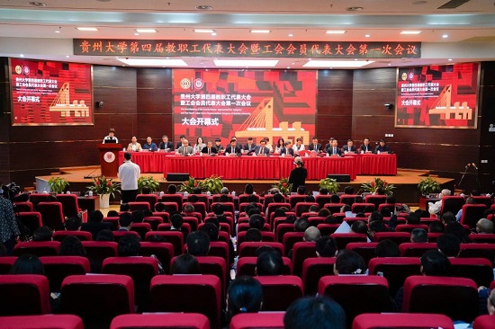 On the morning of April 1, the opening ceremony of the first session for the fourth meeting of college and union representatives, chaired by Linhu Caotao, deputy secretary of Guizhou University’s Party Committee, was held in the conference hall of Xianzheng Building on West Campus. More than 200 people attended the ceremony. The attendees were: Yang Jie, vice chairman and member of the leading party members group for the Guizhou Federation of Trade Unions; Wei Wu, director of the Labor and Economic Affairs Office of the Guizhou Federation of Trade Unions; Huang Kaibin, vice chairman of the Guizhou Education Union; GZU leaders from the presidium including Li Jianjun, Song Baoan, Luo Changjiang, Linghu Caitao, Li Junqi, Deng Chaoyong, and Wu Pan; representatives from the official college and union delegation, special guests, and nonvoting delegates; as well as other union leaders from Guizhou Minzu University, Guizhou Institute of Technology, and Moutai College.