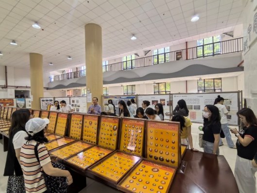 The celebrations began with the opening of the exhibition, "Badges of Mao Zedong: Treasures from Zhou Jihou’s Private Collection." Displayed in the first-floor lobby of Jinzheng Hall, the showcase features over 10,000 badges arranged in 150 frames across four thematic sections. The materials, craftsmanship, and slogans on display offer a striking visual narrative of modern Chinese history. Collector Zhou Jihou was on hand to provide guided tours, sparking lively discussions among attendees of all ages and backgrounds. The exhibition, which runs daily from 9:00 to 17:00 until June 13, was also adopted as a weekly activity by the University's History & Ethnic Cultures Student Party Branch.