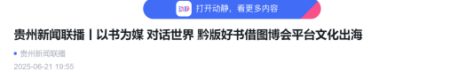 贵州广播电视台:贵州新闻联播丨以书为媒 对话世界 黔版好书借图博会平台文化出海